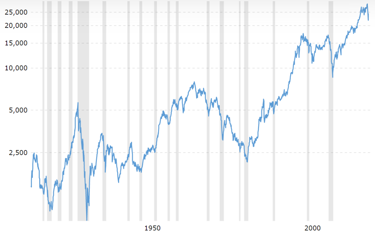 Si tratta dell' indice Dow jones dal 1919 ad oggi, ovvero degli ultimi 100 anni !!! (fonte Ecomatica).