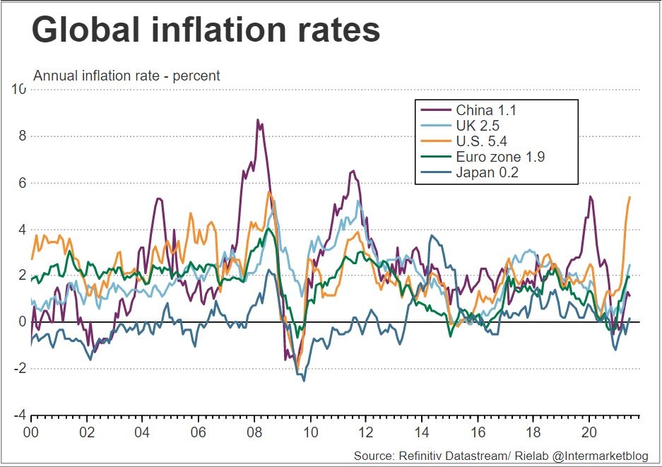 Il tasso inflazione, grazie alla ripartenza globale, è letteralmente decollata, soprattutto negli USA.