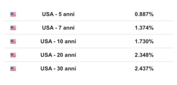 (andamento Treasury 20 anni - aggiornato al Luglio 2021).