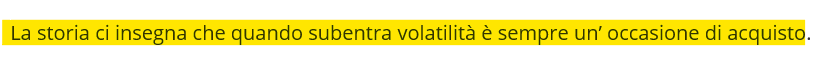 La storia ci insegna che quando subentra volatilità è sempre un’ occasione di acquisto.