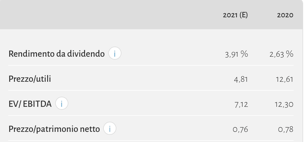 Gli indicatori non presentano valori elevati, il book value è inferiore alla media del settore (attorno a 1).