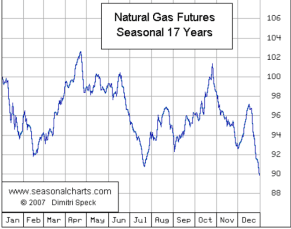 In questa tabella vediamo la stagionalità del Gas Naturale con una statistica di 17 anni: