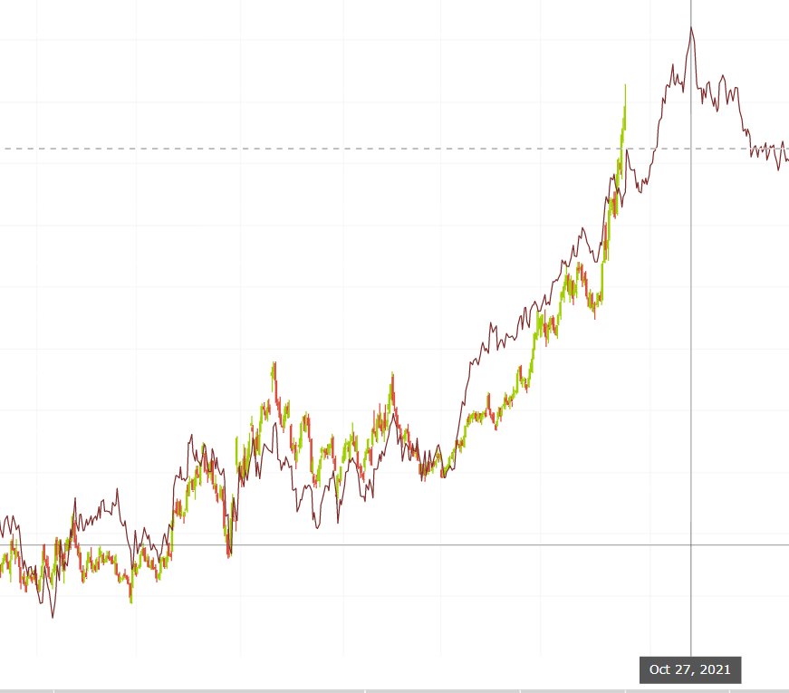 Obiettivo temporale attorno ad Ottobre/Novembre 2021: ovvero il periodo di tempo ideale per il raggiungimento del target (obiettivo di prezzo) secondo la teoria ciclica dell' equilibrio tra prezzo e tempo.